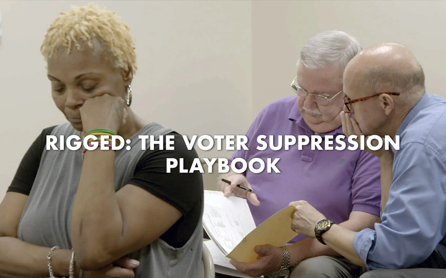 Narrated by Jeffrey Wright, Rigged chronicles how our right to vote is being undercut by a decade of dirty tricks – including the partisan use of gerrymandering and voter purges, and the gutting of the Voting Rights Act by the Supreme Court. The film captures real-time voter purges in North Carolina and voter intimidation in Texas leading up to the 2016 election.