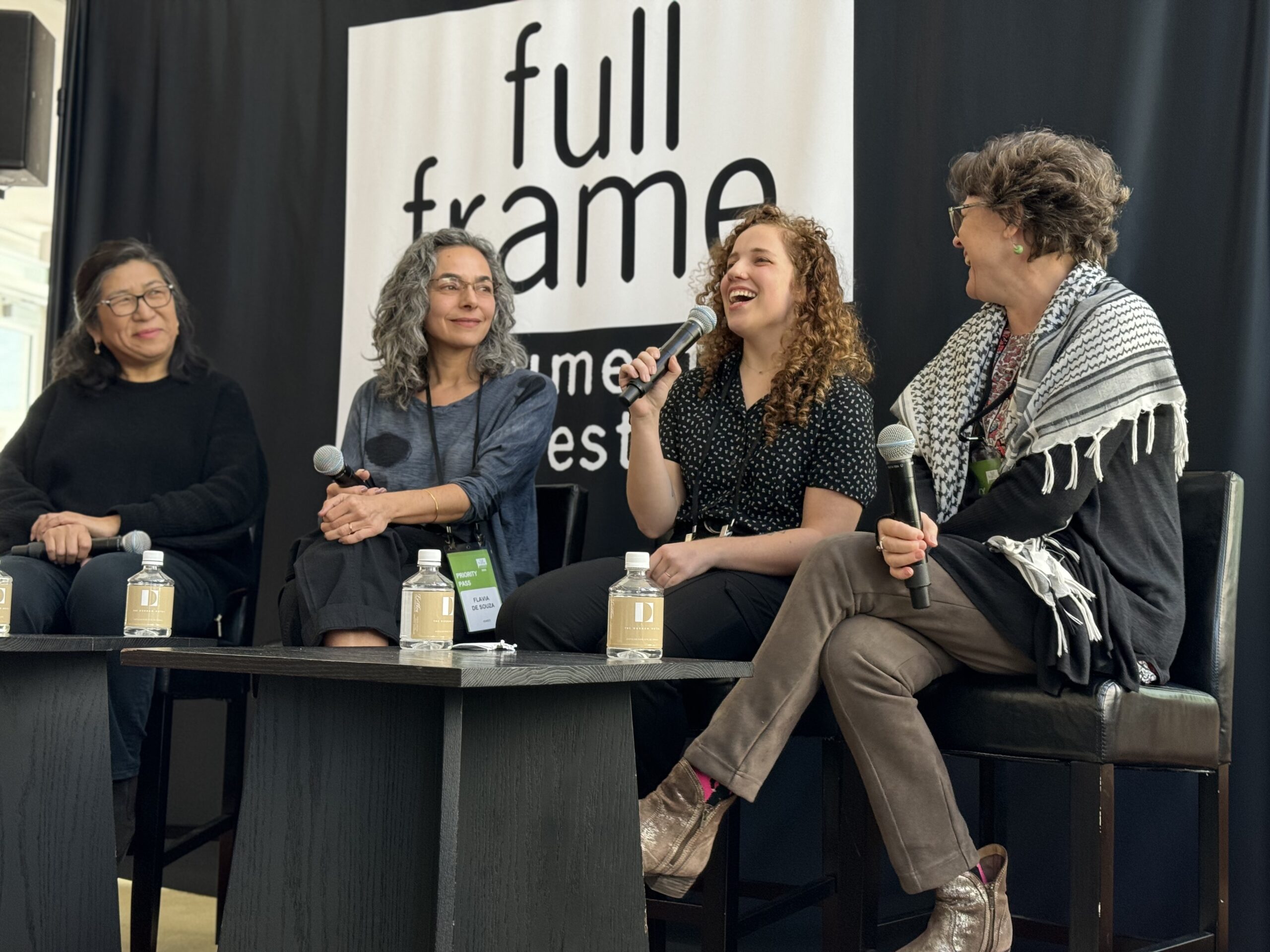 Panelists include Rabab Haj Yahya (Coexistence, My Ass!), Viridiana Lieberman (The Perfect Neighbor), and Michelle Mizner (2000 Meters to Andriivka). Moderated by Claire Ave’Lallemant.